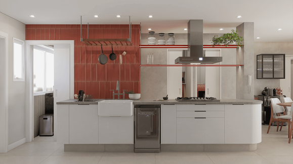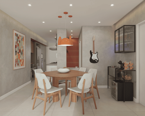 A primeira grande mudança foi derrubar as barreiras entre a cozinha e a área social. Com a integração dos ambientes, criamos um espaço fluido, ideal para receber com leveza e conviver com mais presença. O bar foi reformulado, a marcenaria redesenhada com precisão e a iluminação pensada nos mínimos detalhes — cada cenário ganhou sua própria atmosfera.