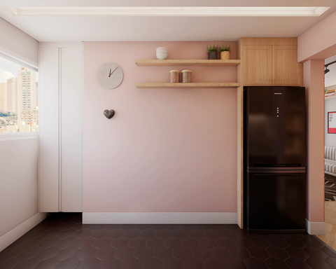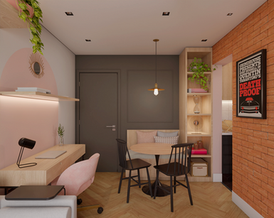 Com apenas 39m², o apartamento nos desafiou a ser criativos com armazenamento e funcionalidade. Era como jogar Tetris em nível hard, mas conseguimos! Uma pequena modificação no layout criou o espaço necessário para atender todas as necessidades do casal. E o resultado? Um lar aconchegante e cheio de estilo, com referências ao rock'n'roll e ao vintage, mas com uma pitada romântica e jovial que é a cara dos moradores.