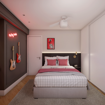 Esse projeto é perfeito para quem adora rock'n'roll e quer trazer essa paixão para dentro de casa! O casal paulistano, fãs de música e cultura pop, chegou até nós com uma idéia muito bem definida do que gostariam. Mas, como bons designers de interiores, sabíamos que precisávamos dar uma afinada na guitarra para que o resultado final fosse tão incrível quanto um solo do Slash.